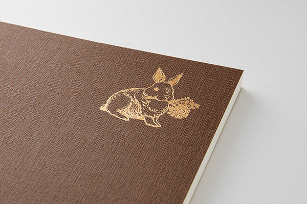 The cover features a motif of a rabbit who loves to eat, stamped in gold foil, adding a sparkling accent.