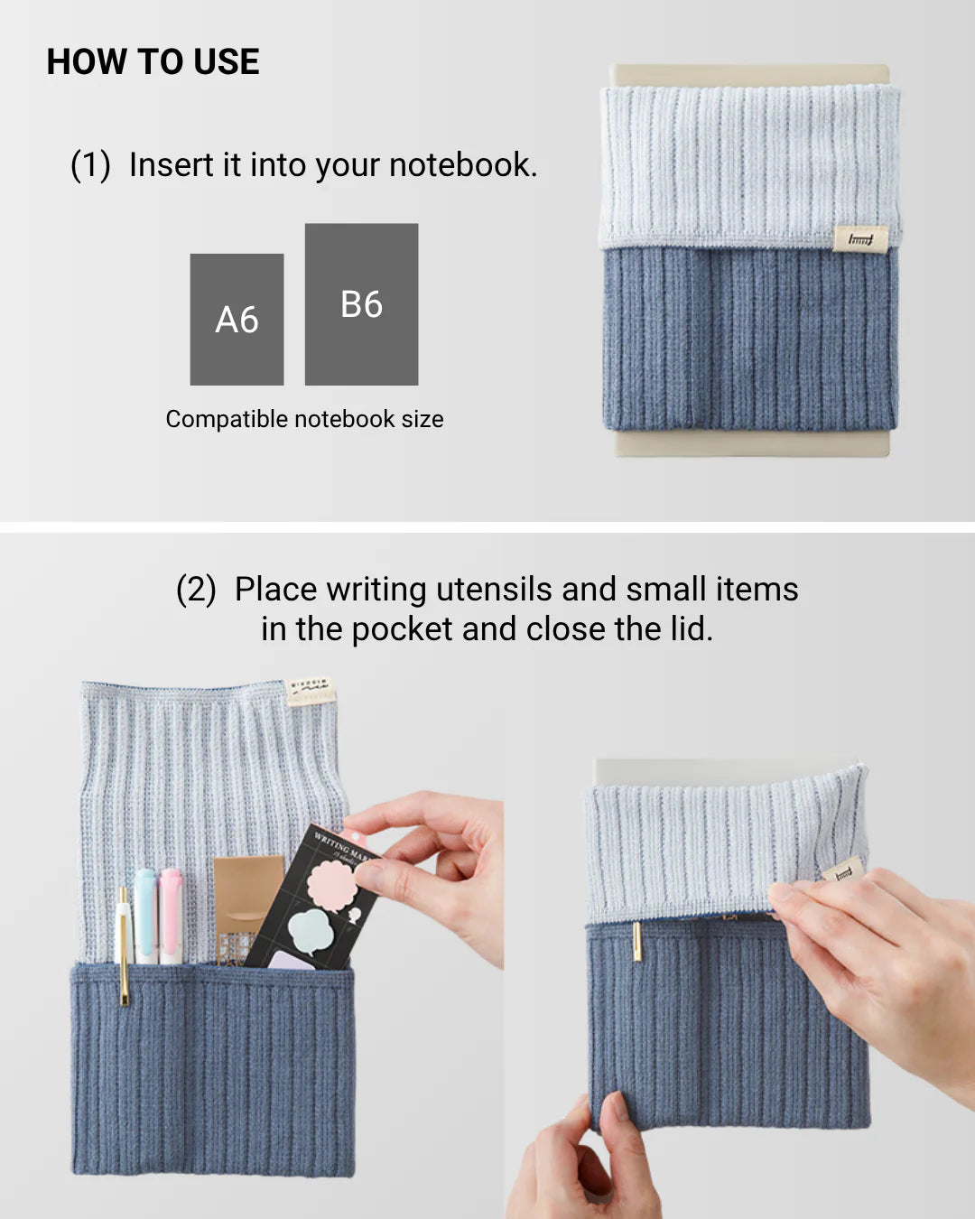 With two stretchable pocket types, you can easily carry pens, pencils, sticky notes, or cards. The versatile design also fits small personal items like lip balm, hand cream, or even a photo to keep close by. The breathable cotton-acrylic knit feels soft year-round, while the cable-knit pattern adds a cozy, refined touch.