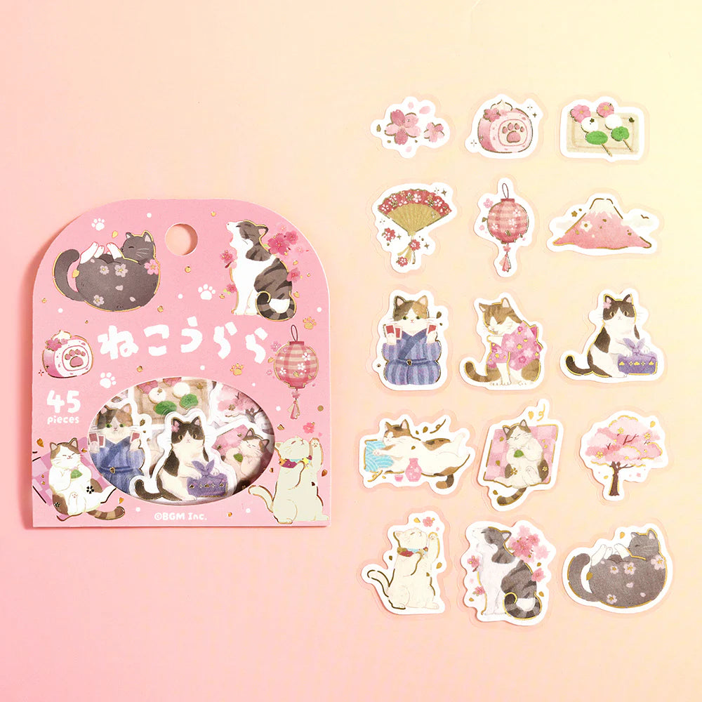 Add a playful springtime charm to your journaling, scrapbooking, and creative projects with the BGM Cherry Blossom Limited Edition Flake Seal – Nekoura-ra. This delightful set features charming illustrations inspired by curious cats and blooming cherry blossoms, capturing a soft, storybook-like sakura atmosphere. Made from high-quality Japanese paper with a masking tape texture, these flake seals are easy to apply, reposition, and layer effortlessly.