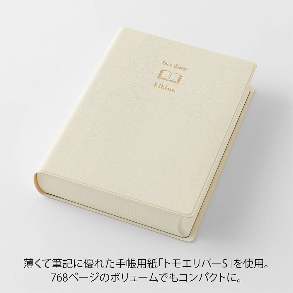 The Midori Diary hibino <A6> Free Diary Ivory is a date-free, two-pages-per-day diary designed to be used freely as a journal, planner, or notebook. Without pre-printed dates, it allows you to write at your own pace—whether daily, occasionally, or whenever inspiration strikes.