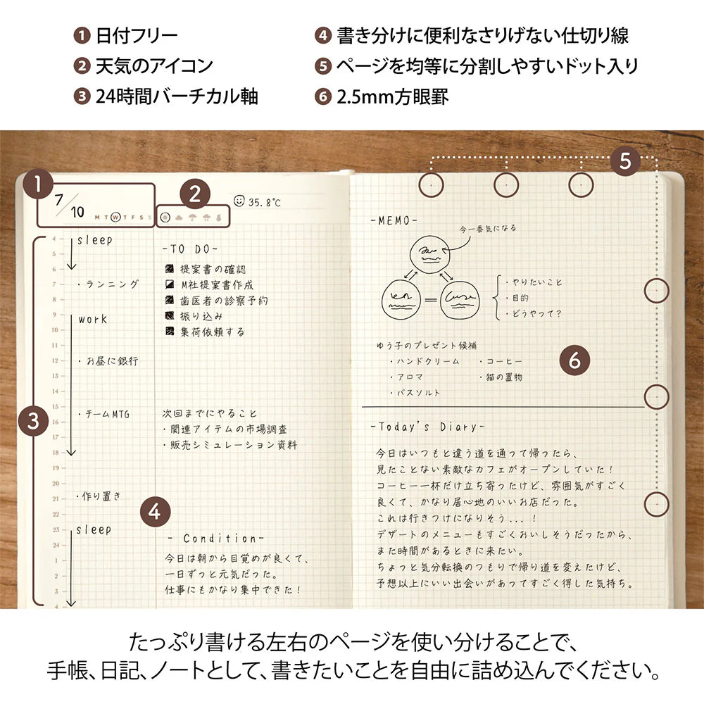 MIDORI Notebook Hibino A6 Free Diary Ivory