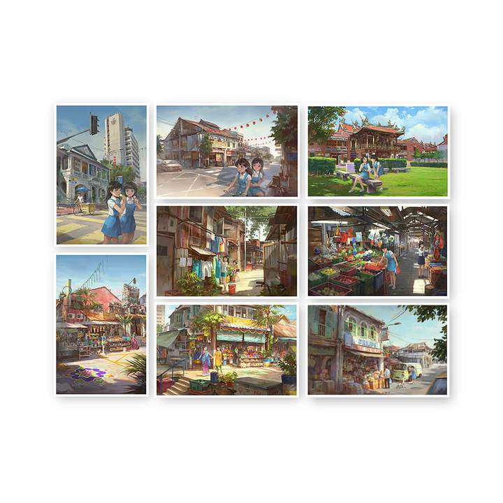 Series of 8 postcards that are digitally painted, perfect for anyone who loves a bit of nostalgic Malaysia.