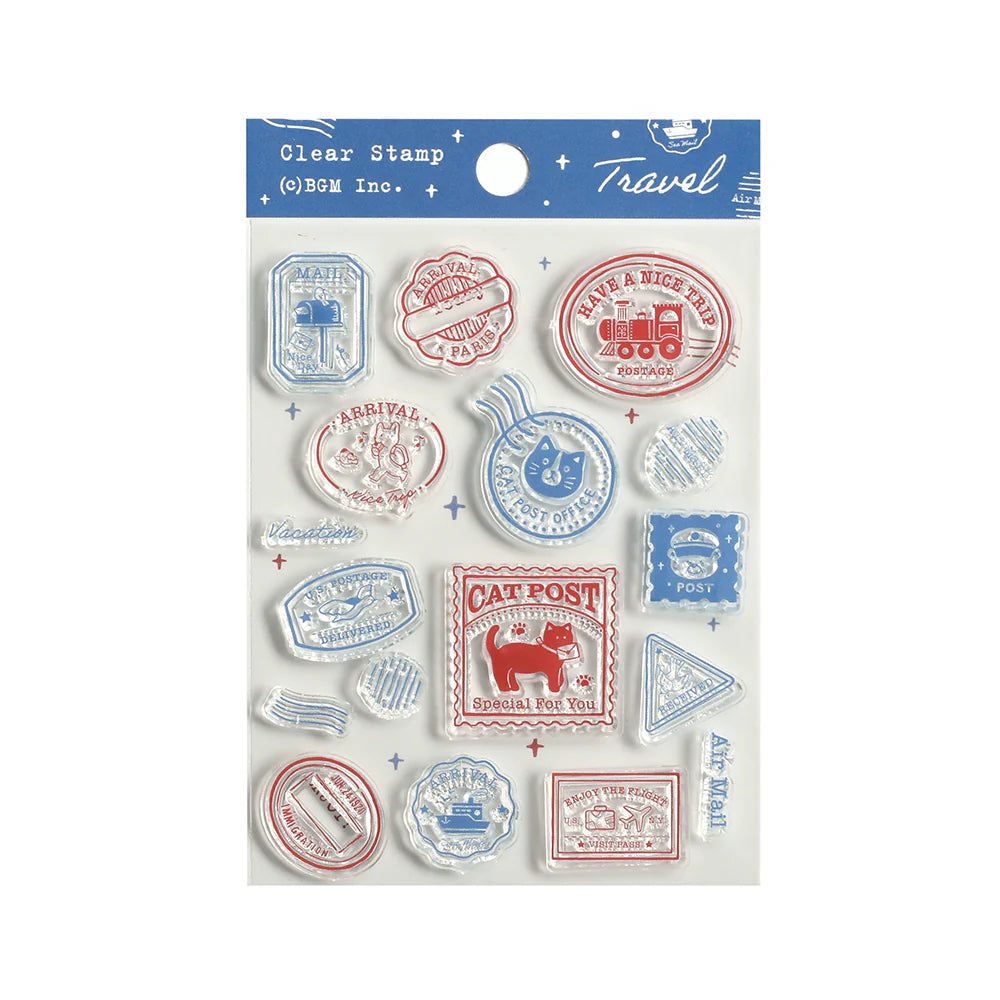 Bring your travel memories to life with the BGM Clear Stamp: Diary – Traveling Stamps. This charming stamp set features vintage-inspired travel motifs—from postage marks to suitcases—designed to add a nostalgic flair to journals, planners, and creative projects. Made from durable polyethylene lipid, each stamp delivers crisp impressions and is easy to clean and reuse.