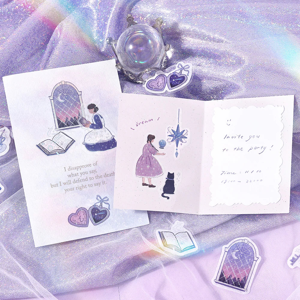 Bring a touch of whimsy and serenity to your creative projects with BGM Foil Stamping Flake Seal: A Maiden's Moment – Dream Time. This enchanting sticker set features delicate illustrations of dreamy, peaceful moments — from starry skies and cozy bedtime scenes to soft clouds and gentle motifs — capturing the magic of quiet reflection and imagination. Each sticker is accented with metallic foil for a subtle shimmer, adding elegance and charm to your journals, planners, letters, and craft projects.