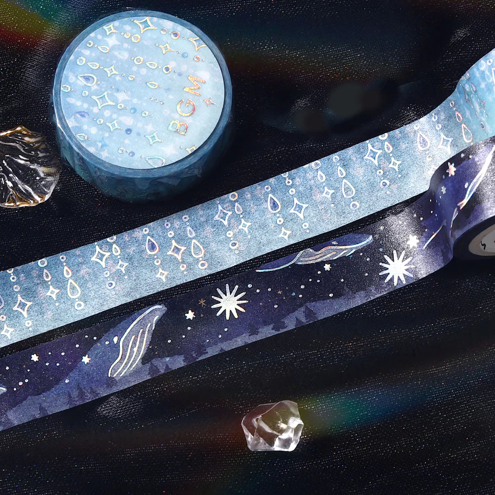 This is BGM Foil Stamping Masking Tape: Life - Drops of Light. This Japanese-crafted tape is designed to inspire wanderlust and add a touch of adventure to your artistic projects.