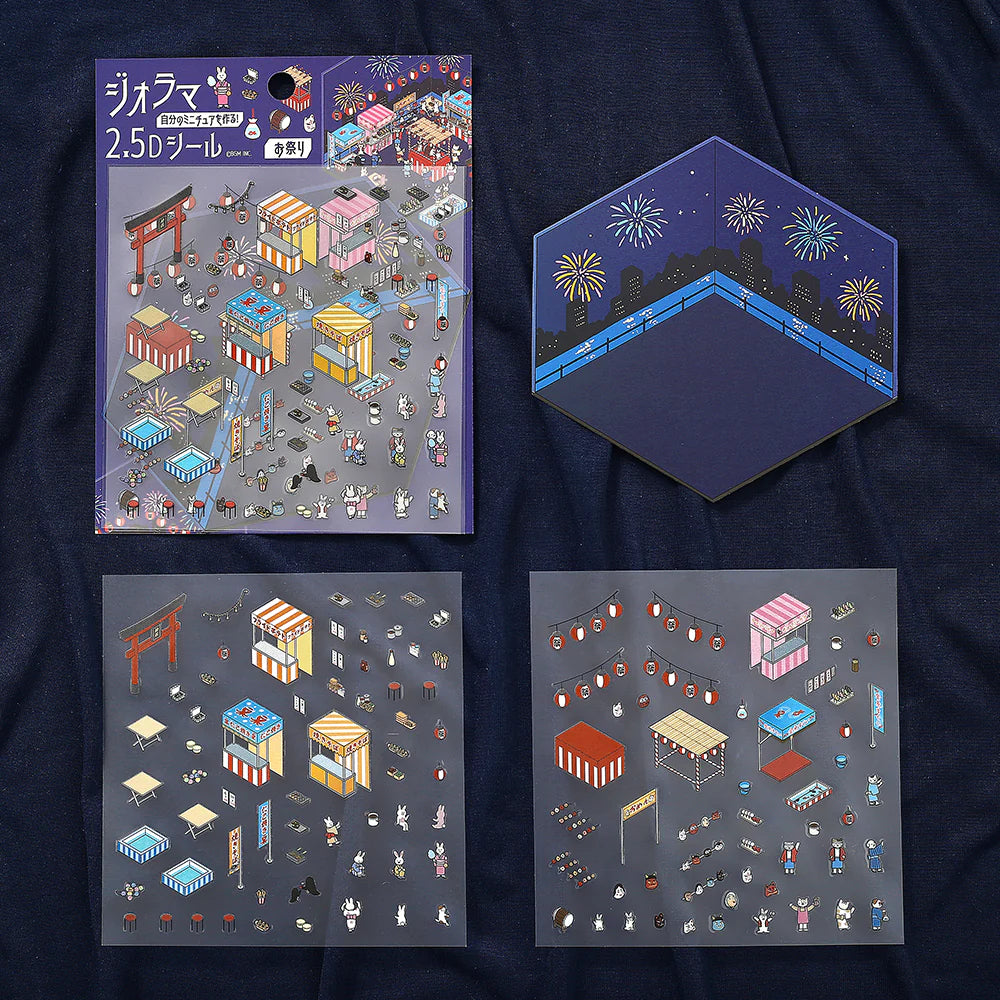 Experience the energy and excitement of a lively festival with BGM Diorama 2.5D Seal – Festivals. Featuring a blend of PET and paper materials, these layered stickers create a dimensional scene that brings your journal or planner to life. Step into the festive spirit of the Geotama world—filled with lanterns, games, and joyful celebration—perfect for inspiring your imagination and helping you focus while you create.