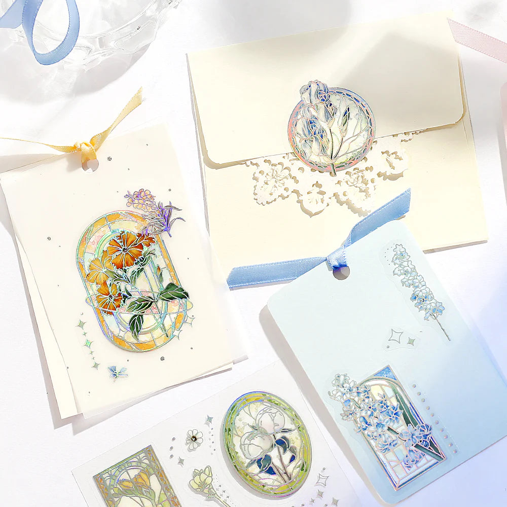 Bring a radiant glow to your creative projects with the BGM Foil Stamping Iride Seal – Iride: Stained. Inspired by the soft shimmer of stained glass, these elegant stickers feature a unique aurora foil effect that catches the light beautifully, adding a magical touch to journals, planners, gift wrap, and more.