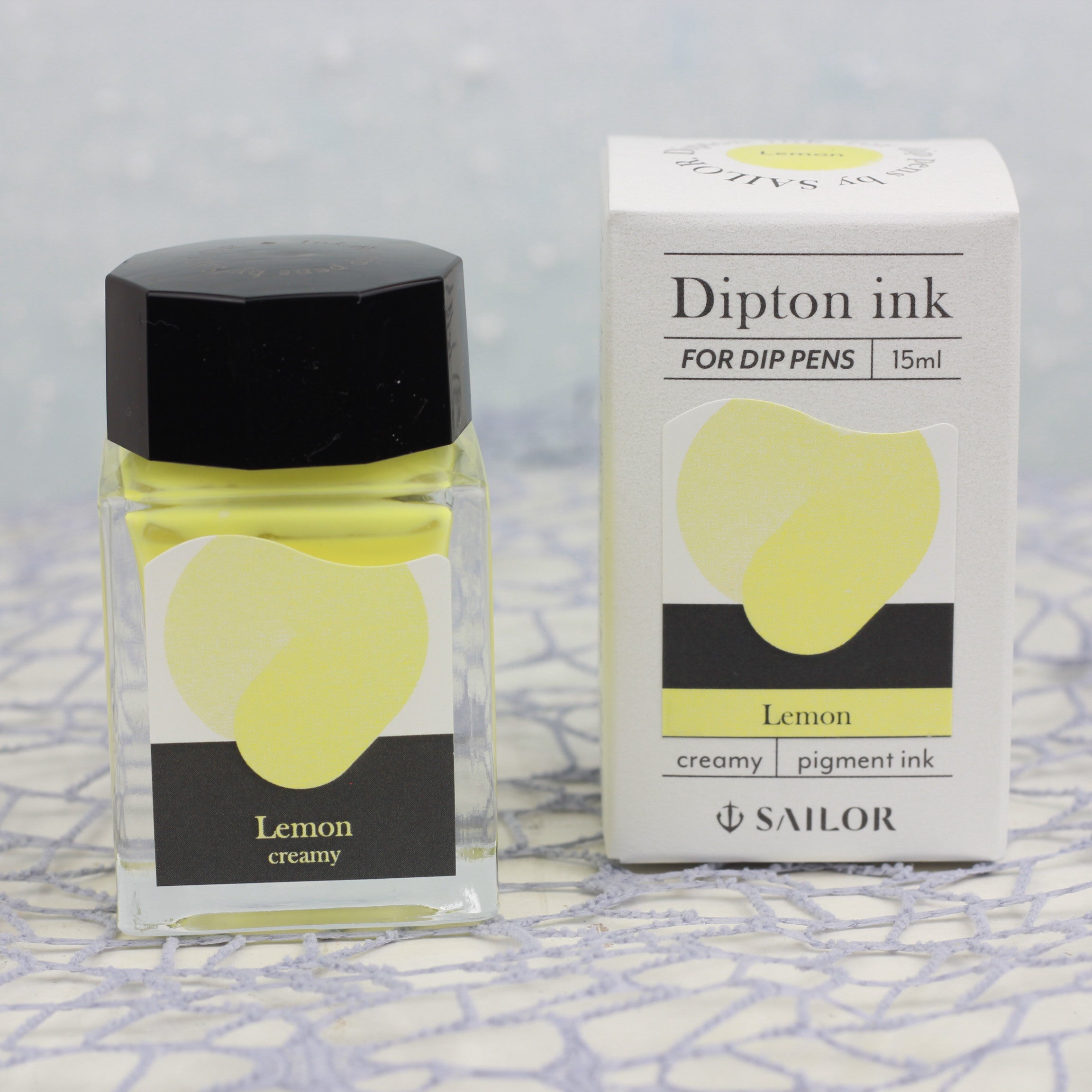 DIPTON Creamy Bottle Ink 20ml Lemon Ink: Pigment ink, Volume: 0.5 fl oz (15 ml)Package: Paper boxProduct Size (W x D x H): 1.3 x 1.3 x 2.3 inches (34 x 34) Only Use on Dip Pen