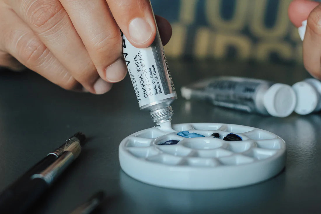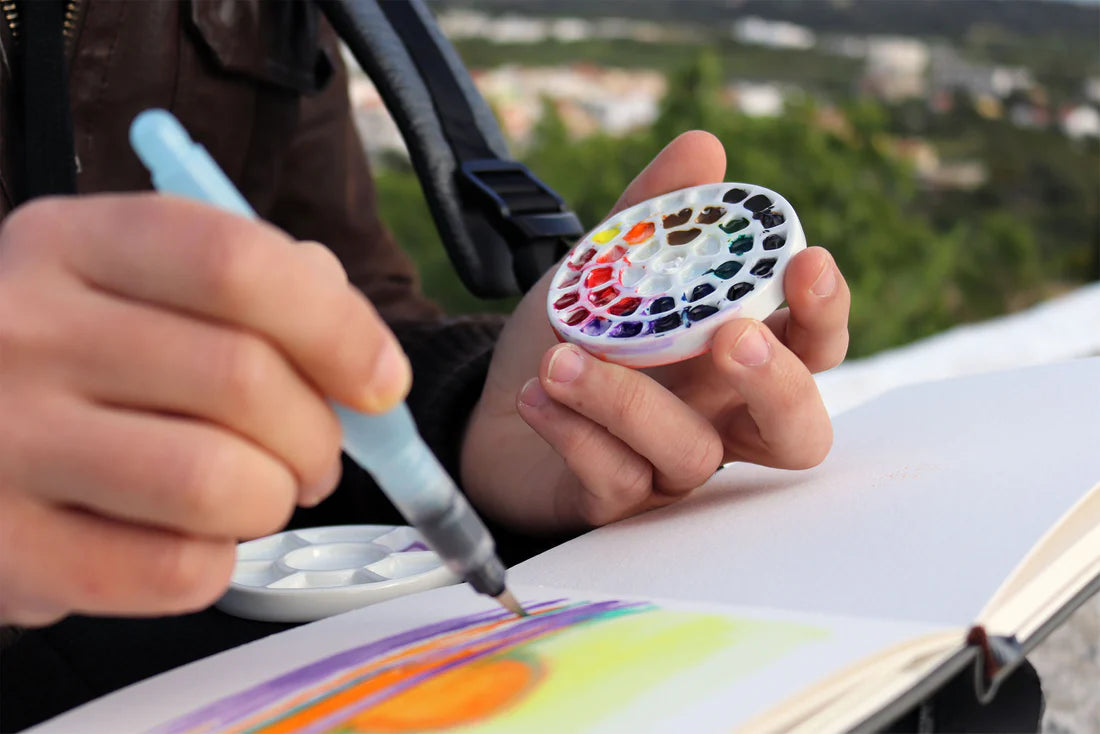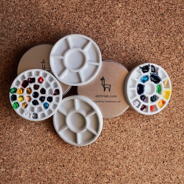 The Etchr Mini Palette is a travel-sized watercolourist's companion built to carry and mix you favourite colours in one tiny kit.