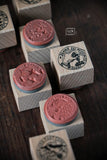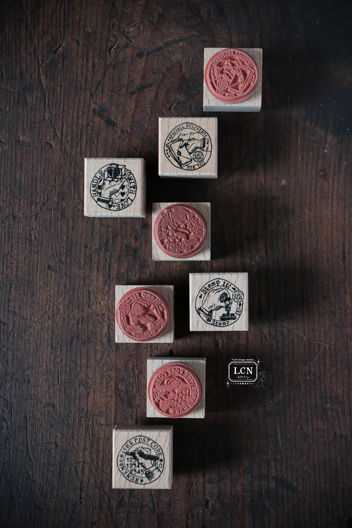 The Ivory white rubber was die-cut and assembled with a wood handle.