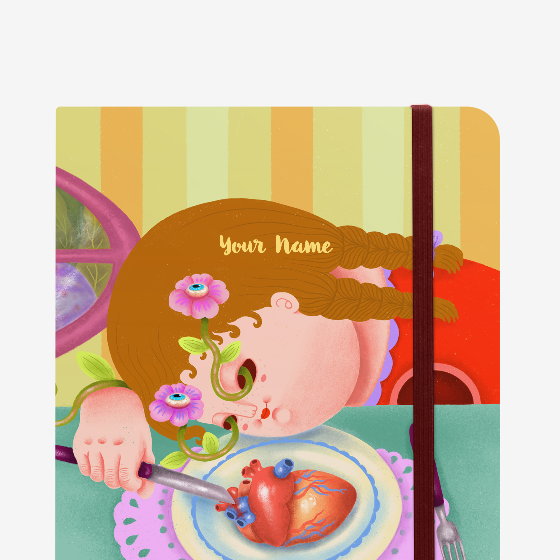 This piece reflects the quiet tension between desire and guilt. The act of eating a heart symbolises consuming one’s own emotions—perhaps love, pain, or secrets—while being silently observed. It’s about the unseen weight of inner thoughts that cannot be spoken but are deeply felt.